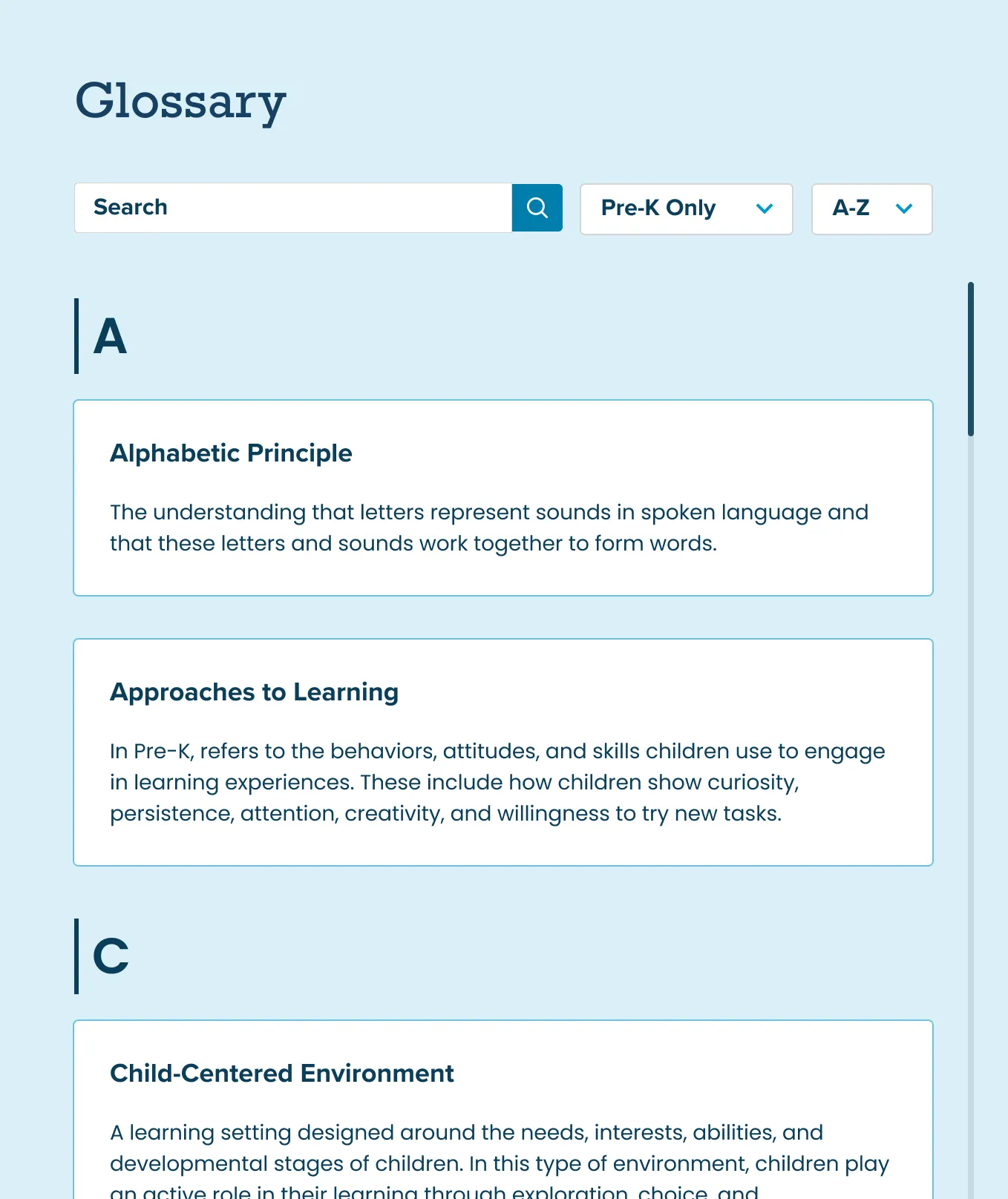 Explore the Pre-K Glossary