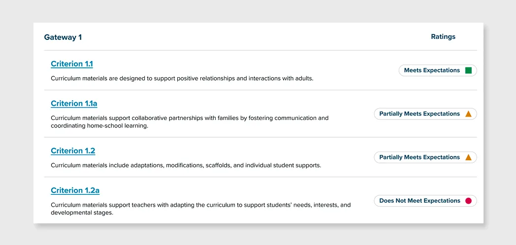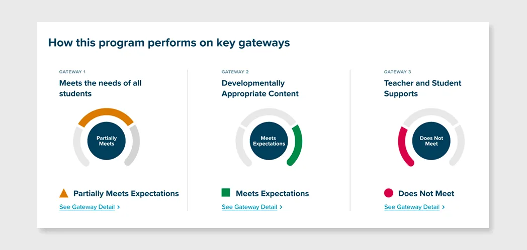 Review the criteria and indicators within each gateway to get a fuller picture of the materials.